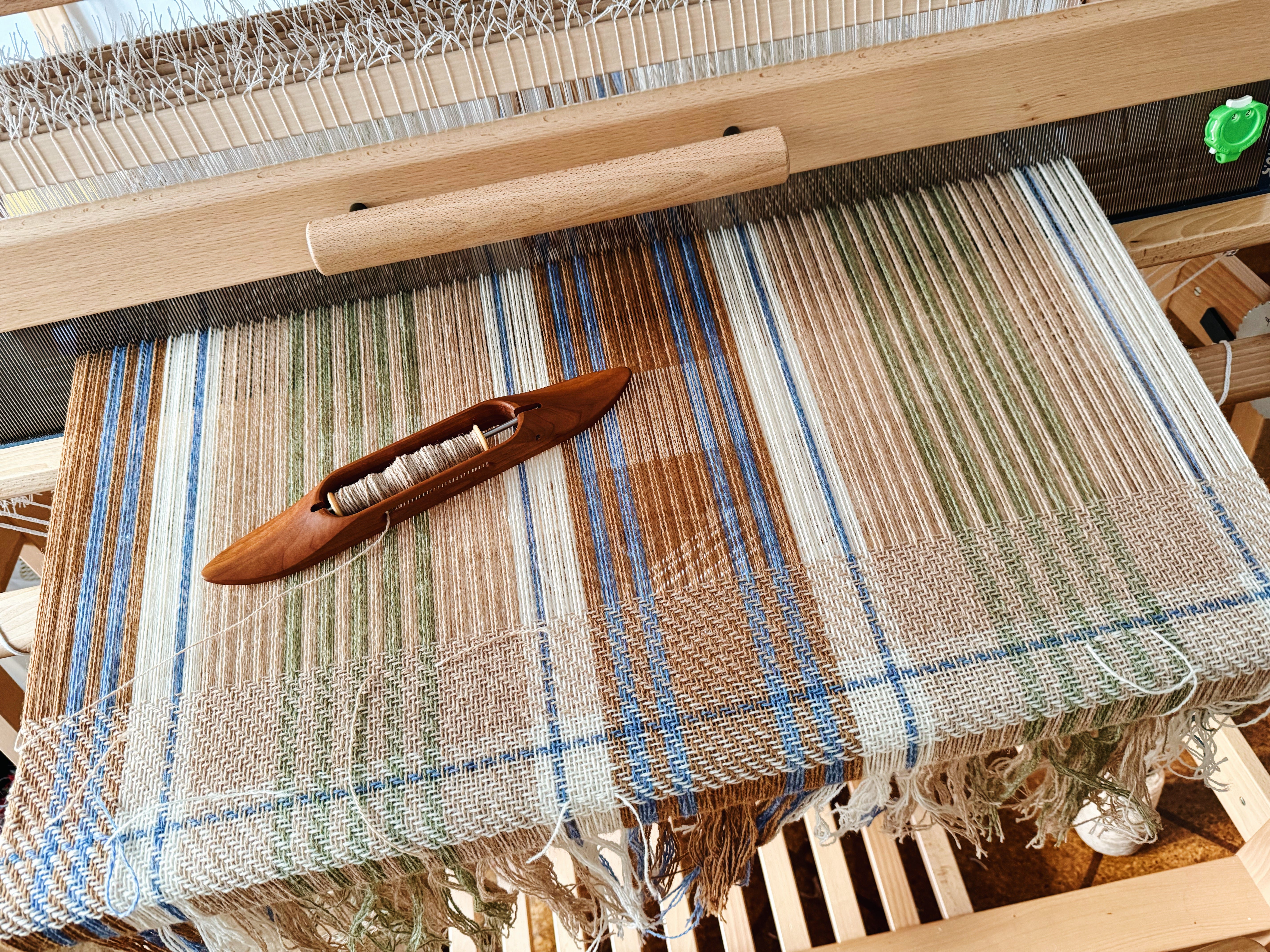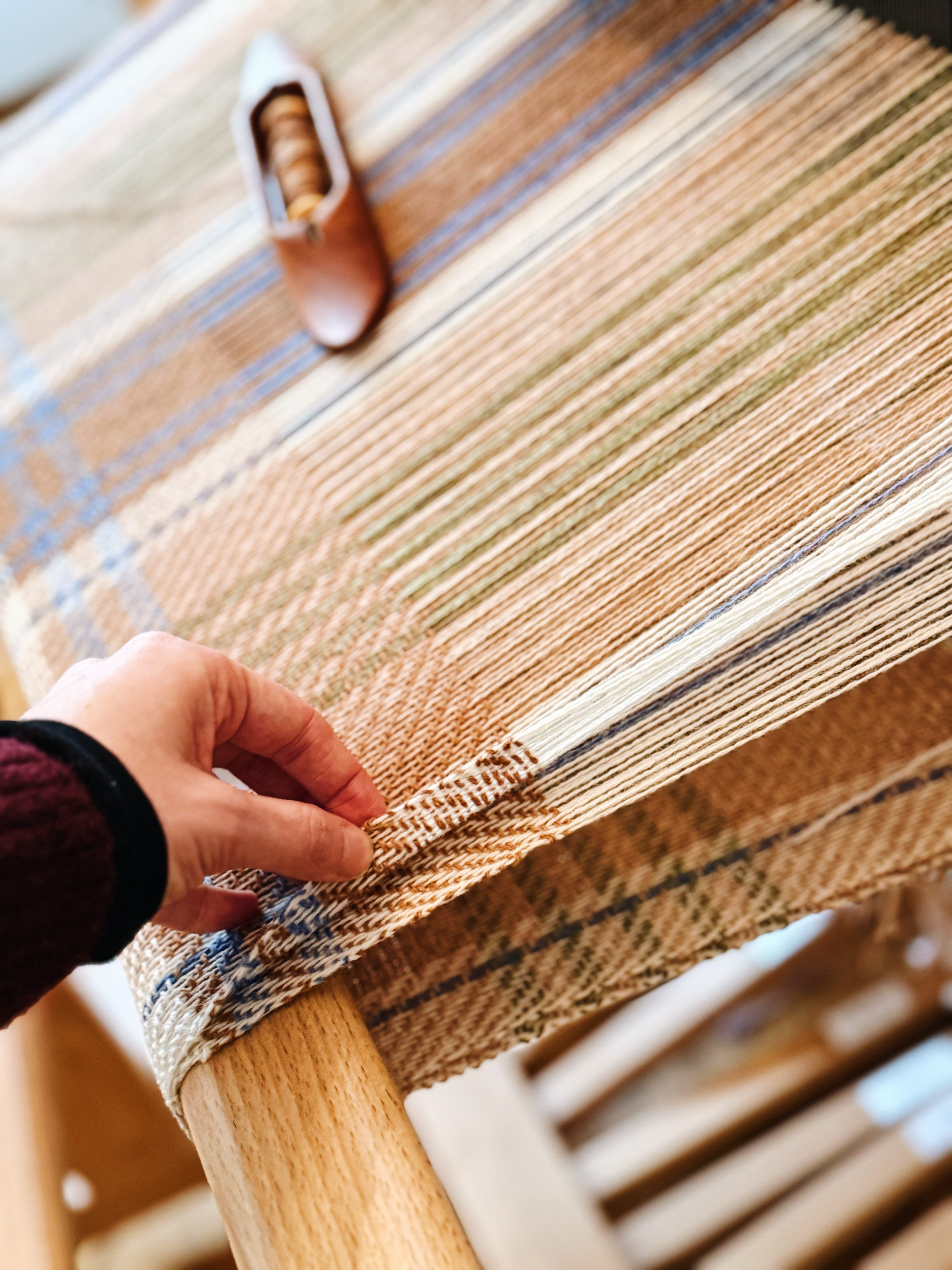 The only way to make a piece of fabric wider than my loom is: a) to weave multiple pieces and sew them together at the end, or b) use a doubleweave structure to weave two layers. The first option could work if I wanted a piece-y, color blocked look, but my mother wanted a classic plaid. Visible seams weren’t going to cut it.